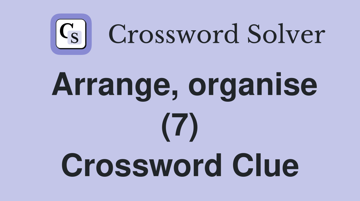 Arrange organise (7) Crossword Clue Answers Crossword Solver