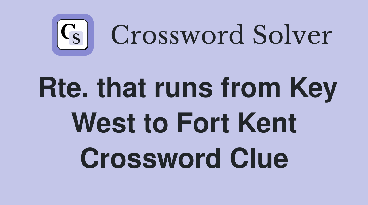 Rte that runs from Key West to Fort Kent Crossword Clue Answers
