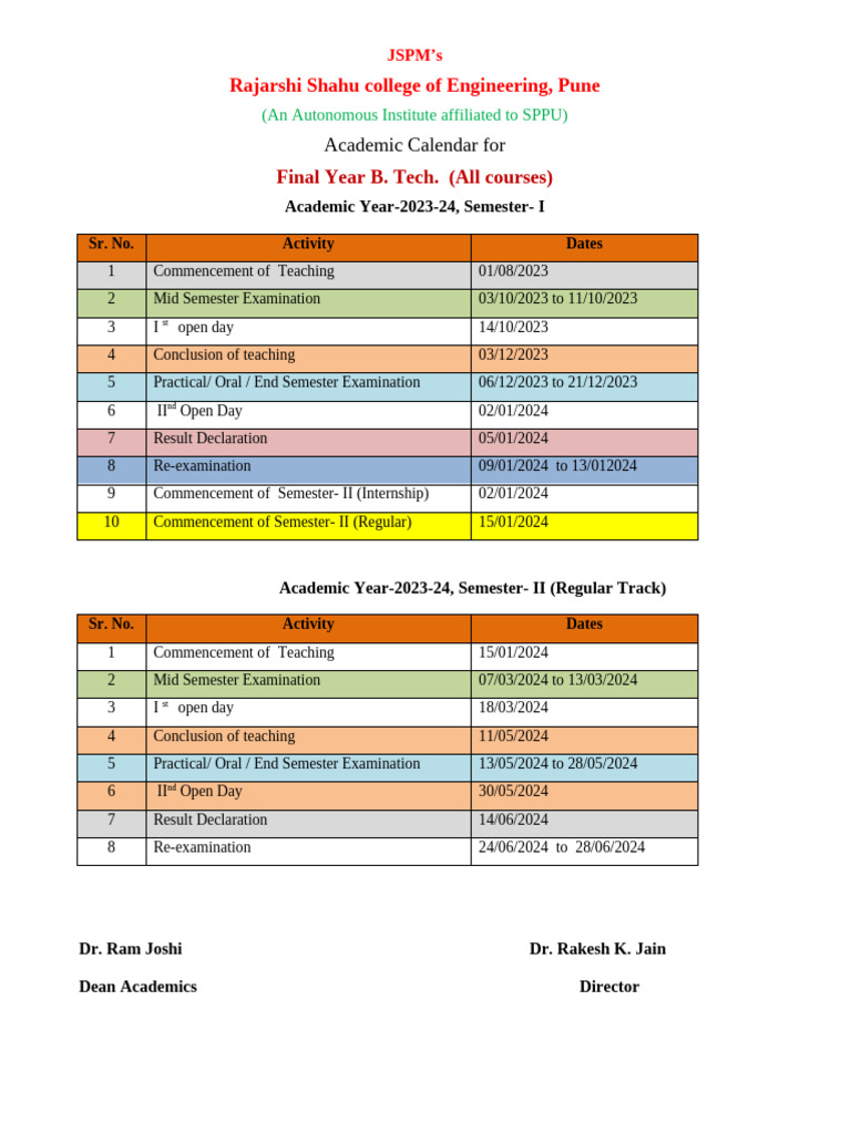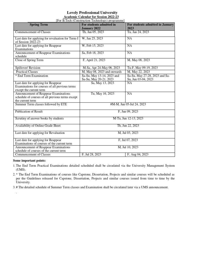 Academic Calendar For B Tech (Construction Technology) PDF Academia