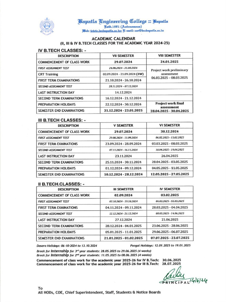 New Btech 2024 Academic Calendar PDF Academic Term Academia