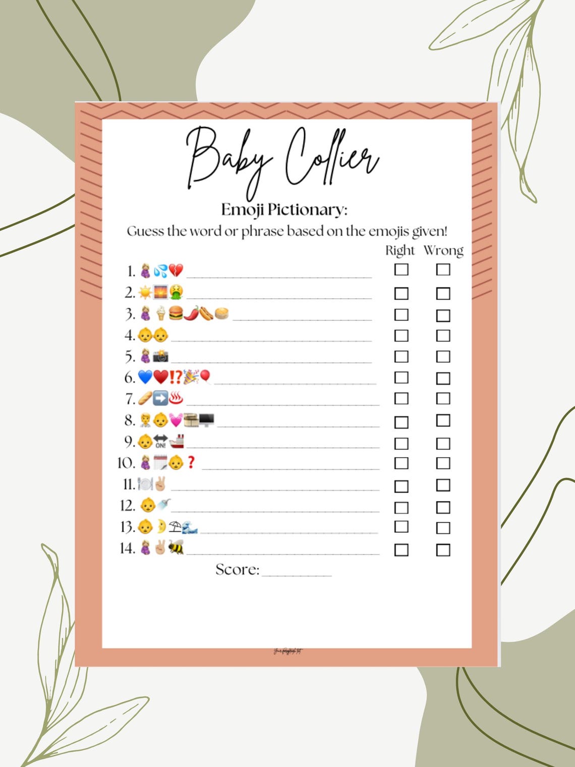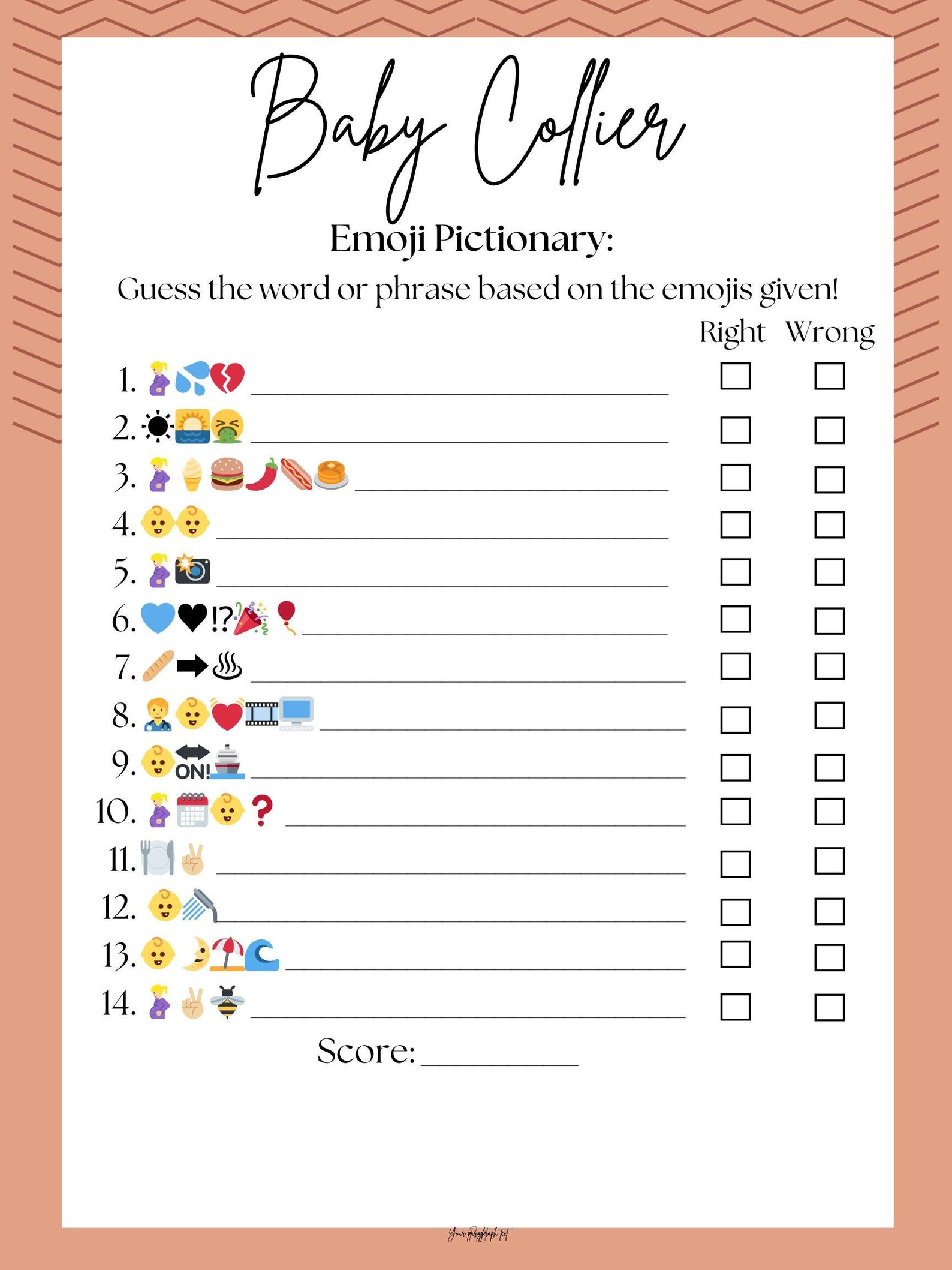 Baby Shower Game Emoji Pictionary Editable Template Answer Key Included