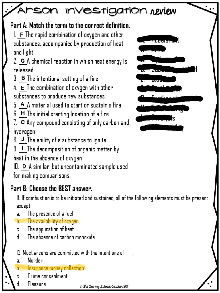 Arson Evidence Review Puzzle Template Answer Key