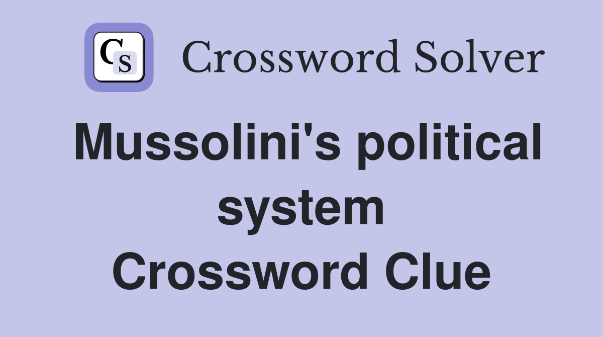 Mussolini #39 s political system Crossword Clue Answers Crossword Solver