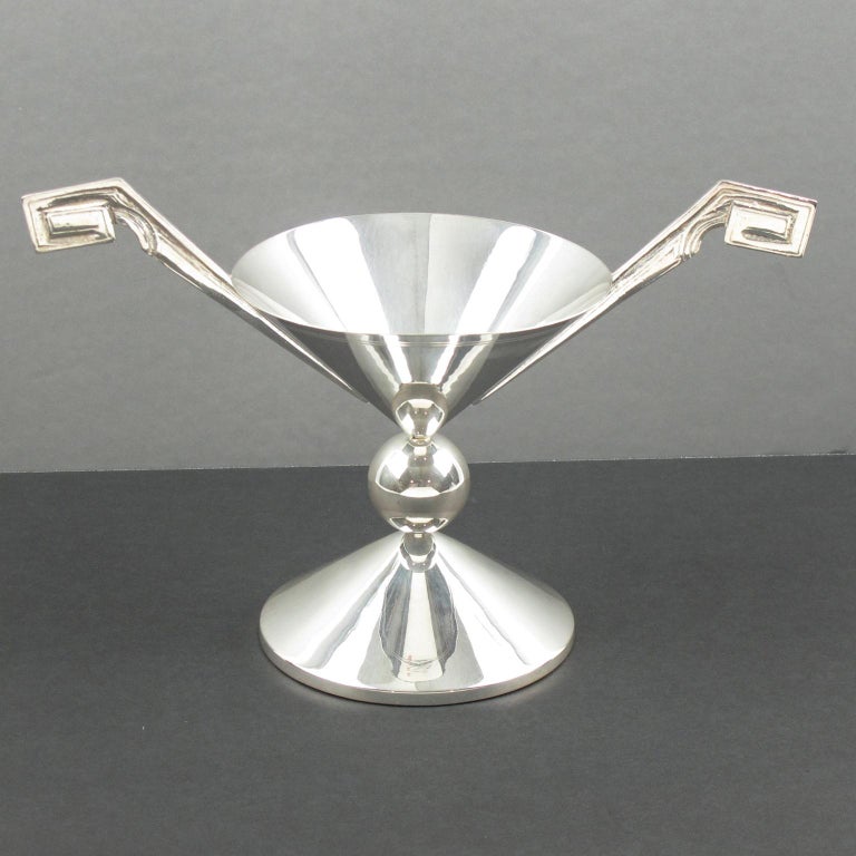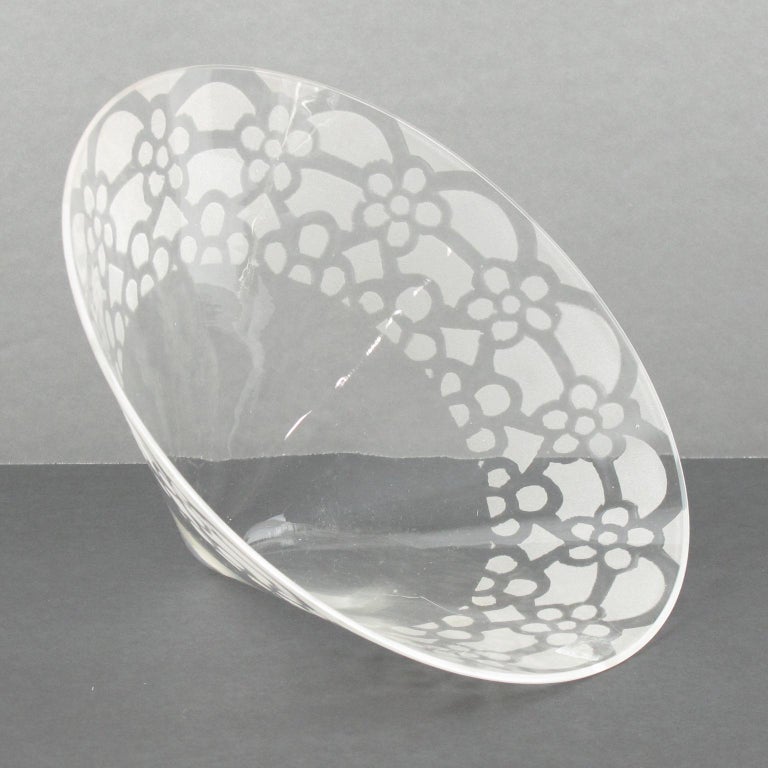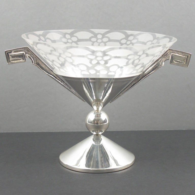 French Art Deco Silver Plate and Etched Glass Centerpiece Bowl For Sale