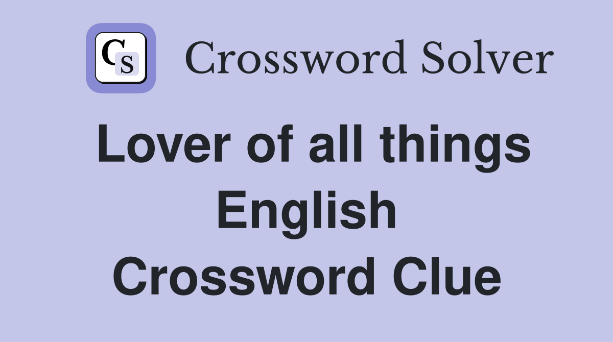 Lover of all things English Crossword Clue Answers Crossword Solver