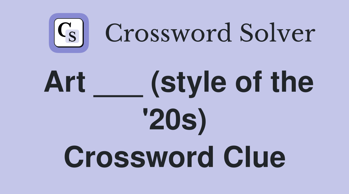 Art (style of the 20s) Crossword Clue Answers Crossword Solver