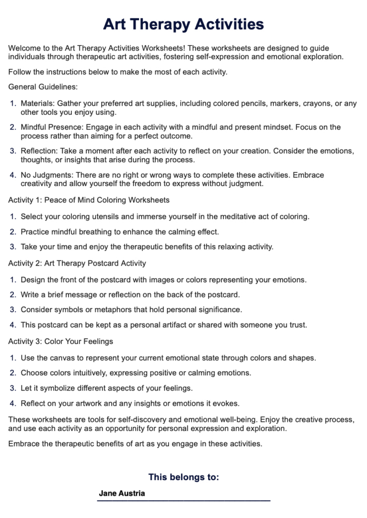 Art therapy worksheets example free pdf download Artofit