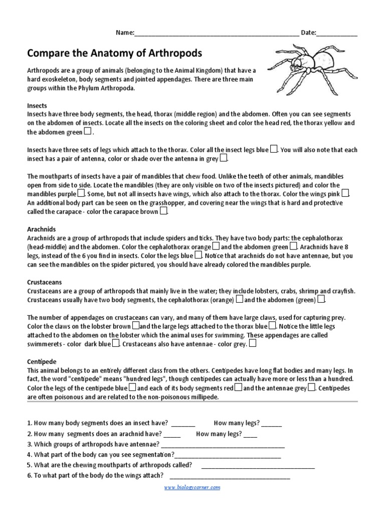 Arthropod Coloring Worksheet Answers Printable Calendars AT A GLANCE