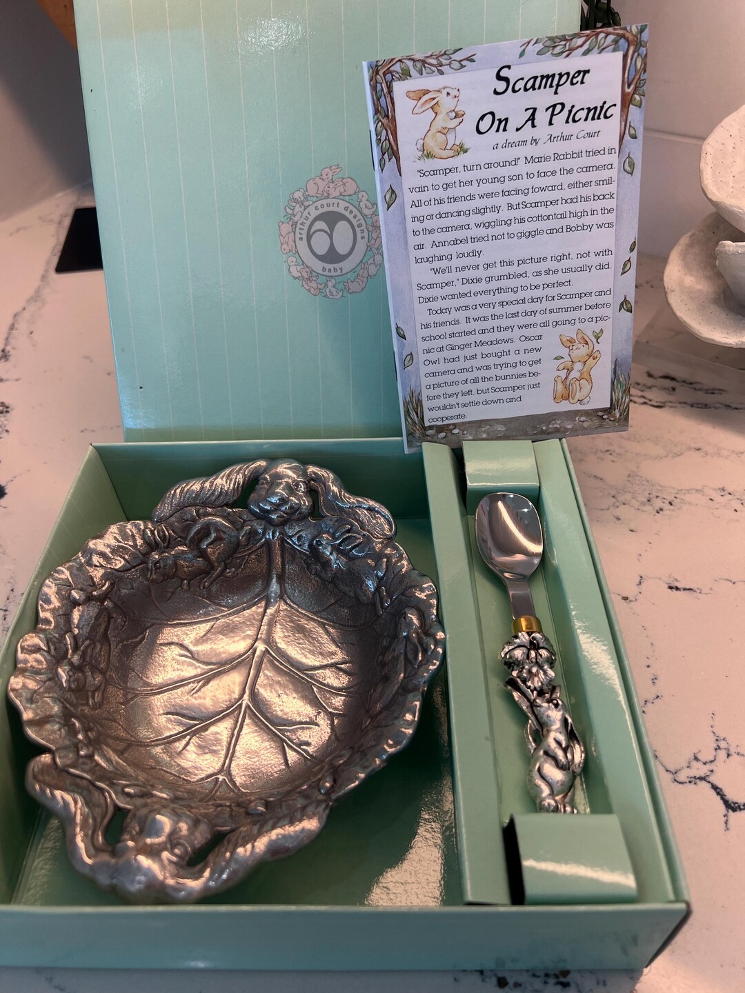 Arthur Court Baby Bunny Baby Bowl Spoon Boxed Gift Set Scamper Picnic