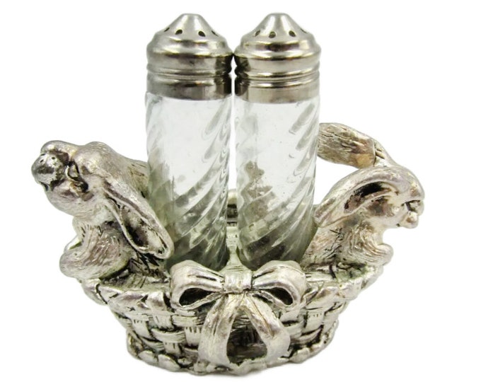 Arthur Court Bunny Rabbit Salt Pepper Shakers With Basket Tray Signed
