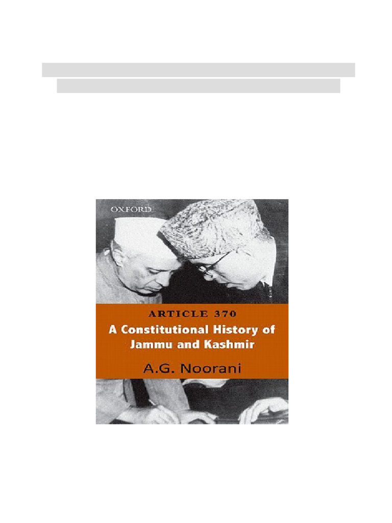 Article 370 A Constitutional History of Jammu and Kashmir A G Noorani