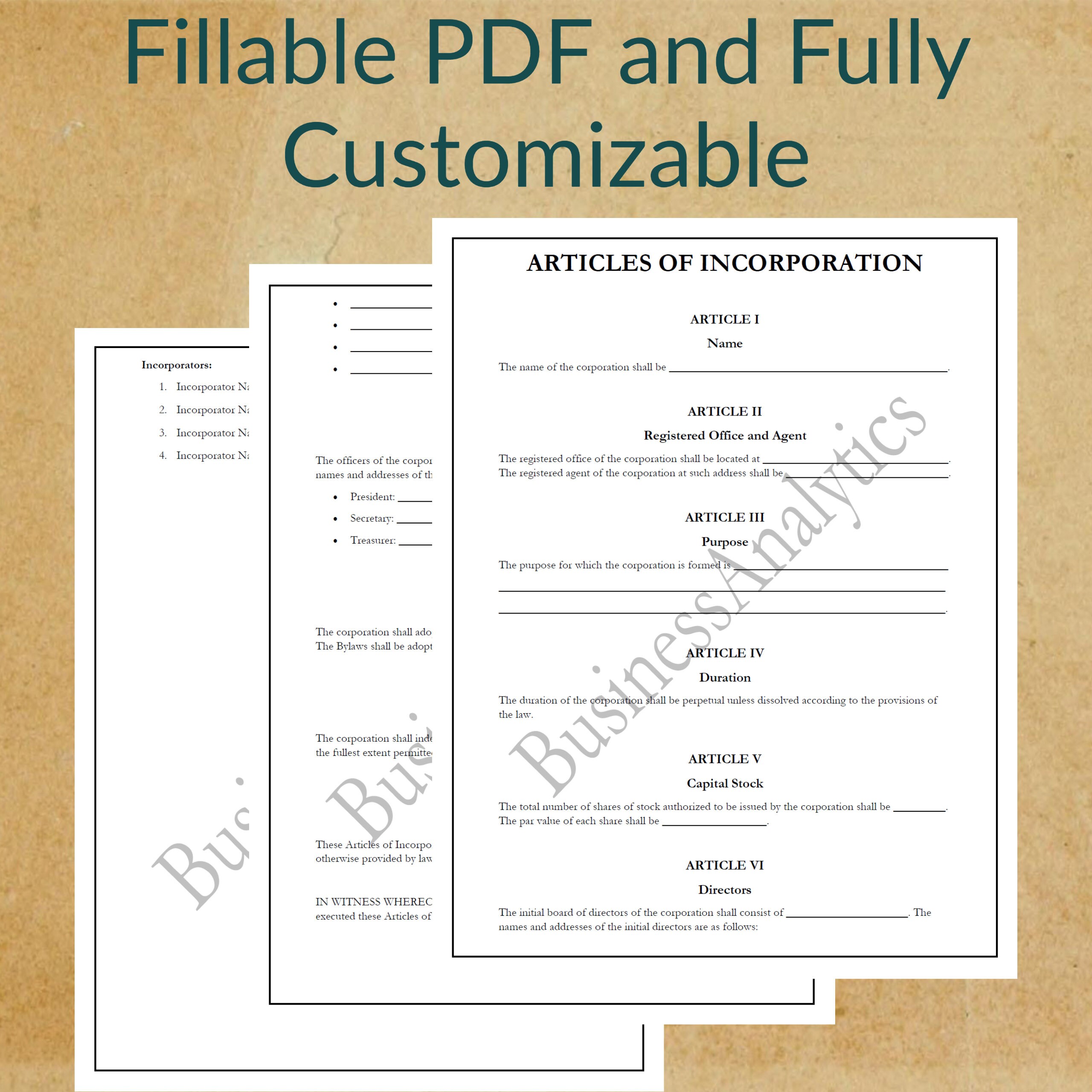 Fillable Online Articles of Incorporation: Free PDF Word Doc Template