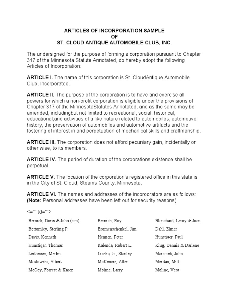 Articles Of Incorporation Template Free Free Startup Business Plan