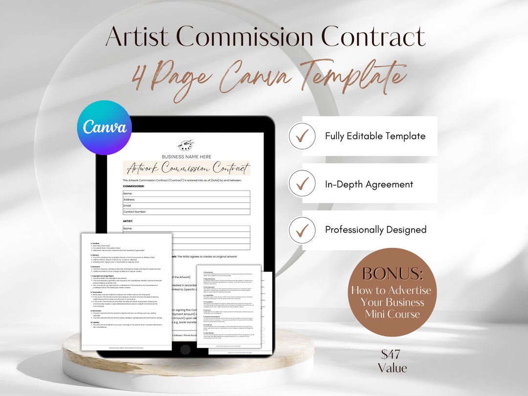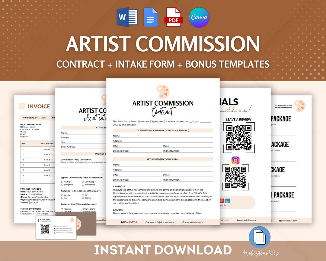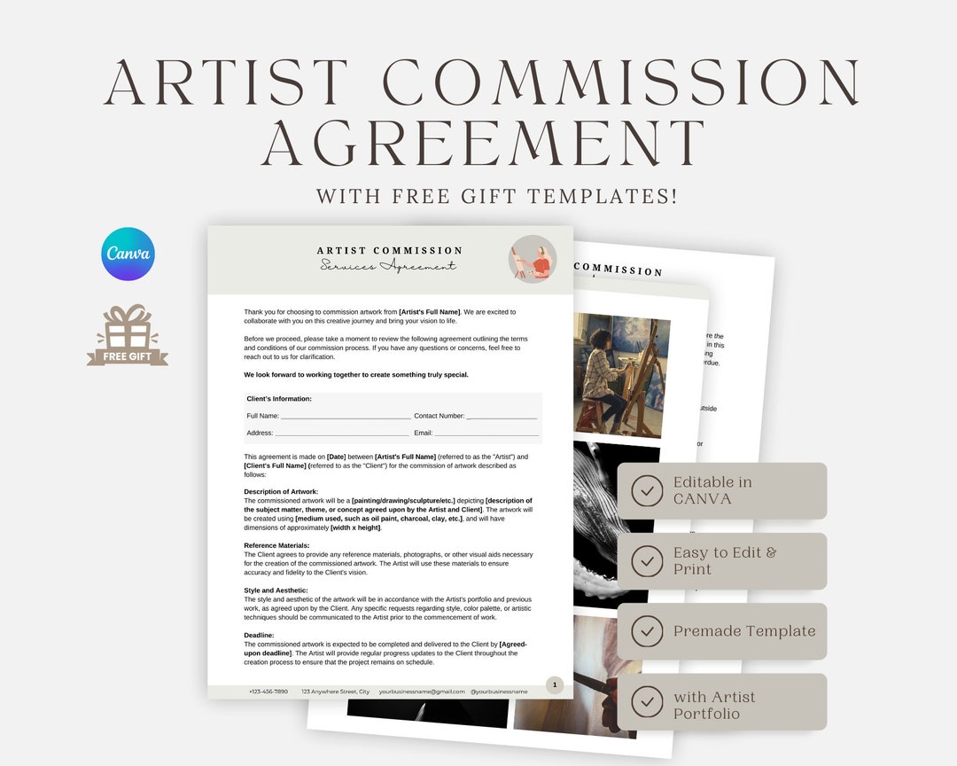 Artist Commission Contract Bundle Art Commission Agreement Template