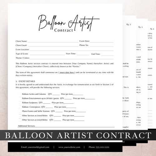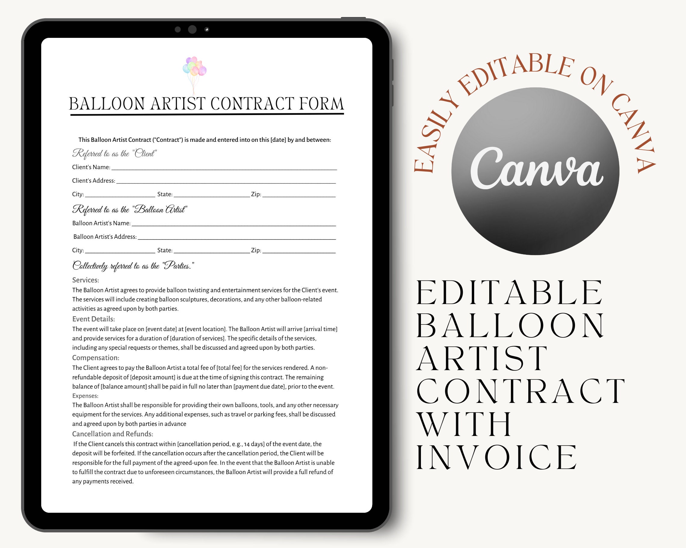 Editable Balloon Artist Contract balloon Stylist Agreement Balloon