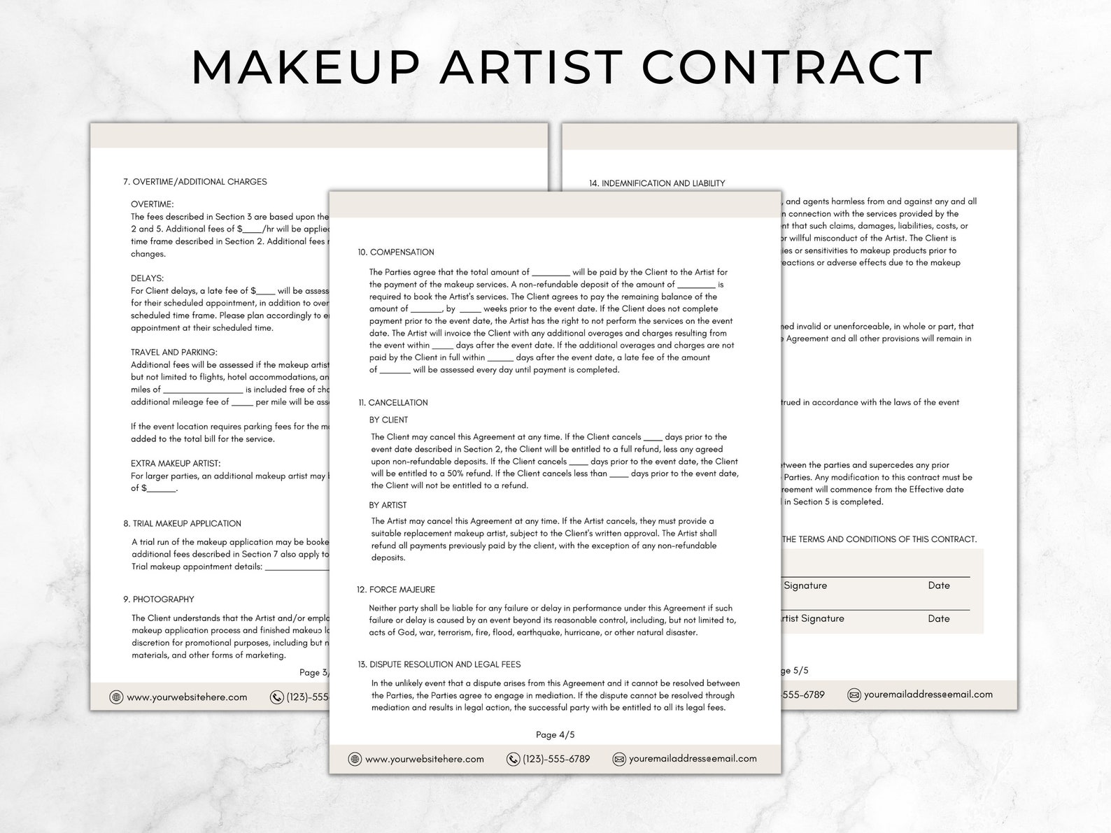 Makeup Artist Contract Editable Template MUA Agreement Makeup Service