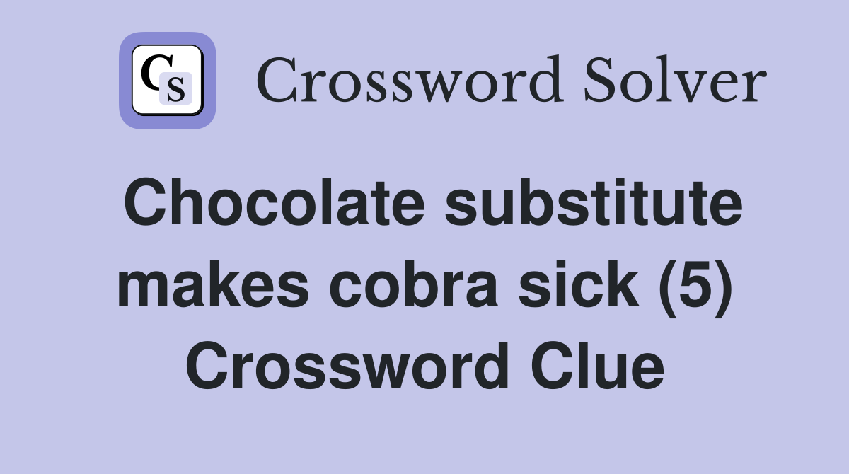 Chocolate substitute makes cobra sick (5) Crossword Clue Answers
