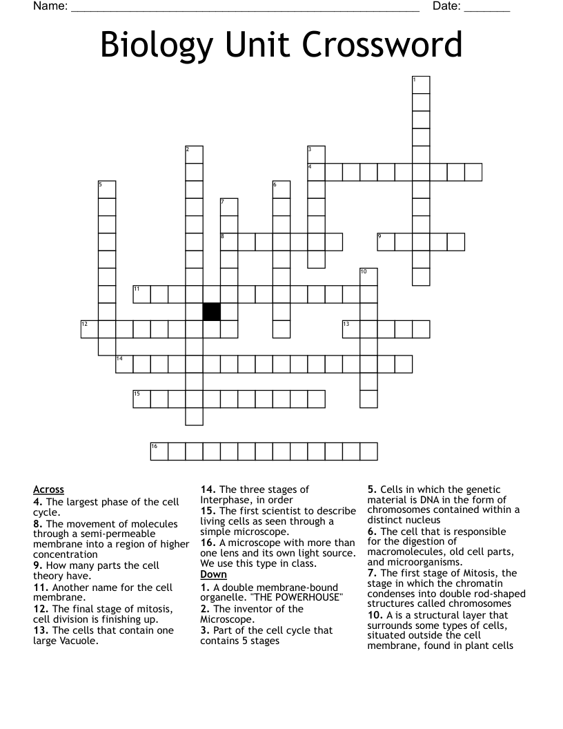Cell Unit Crossword WordMint