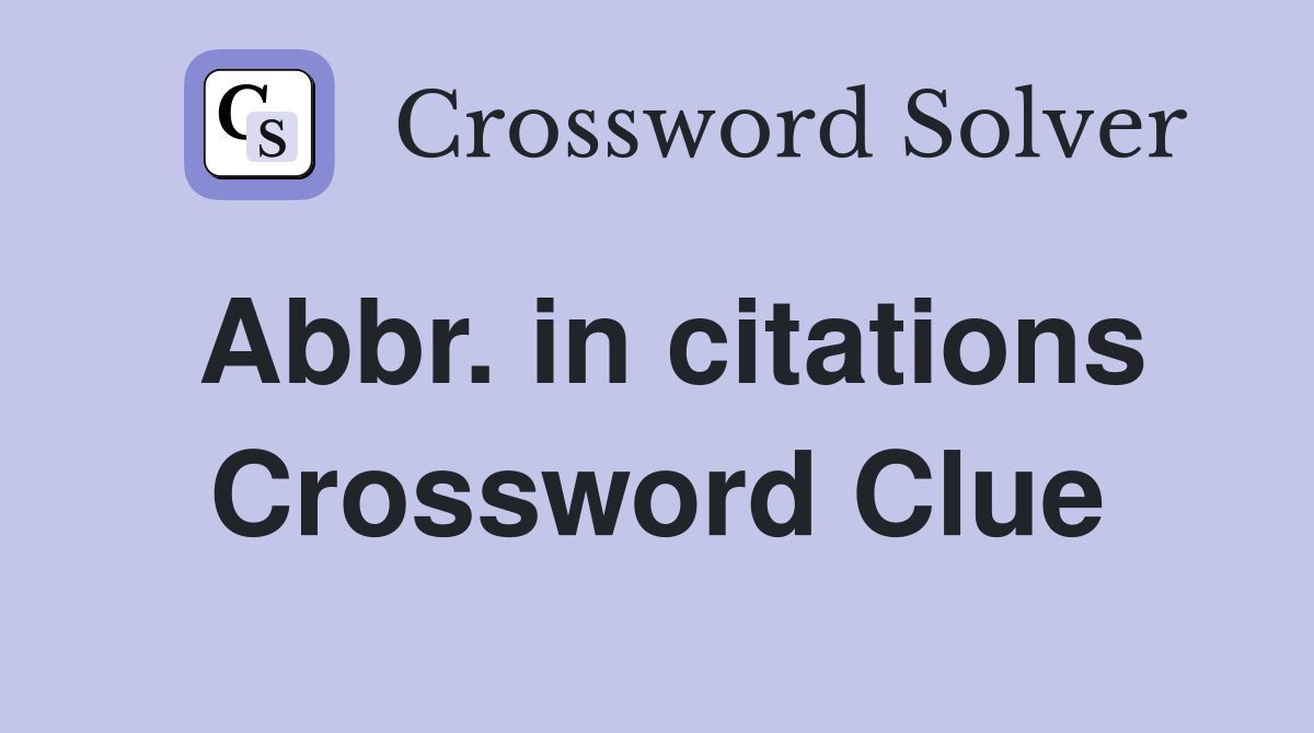 Abbr in citations Crossword Clue Answers Crossword Solver
