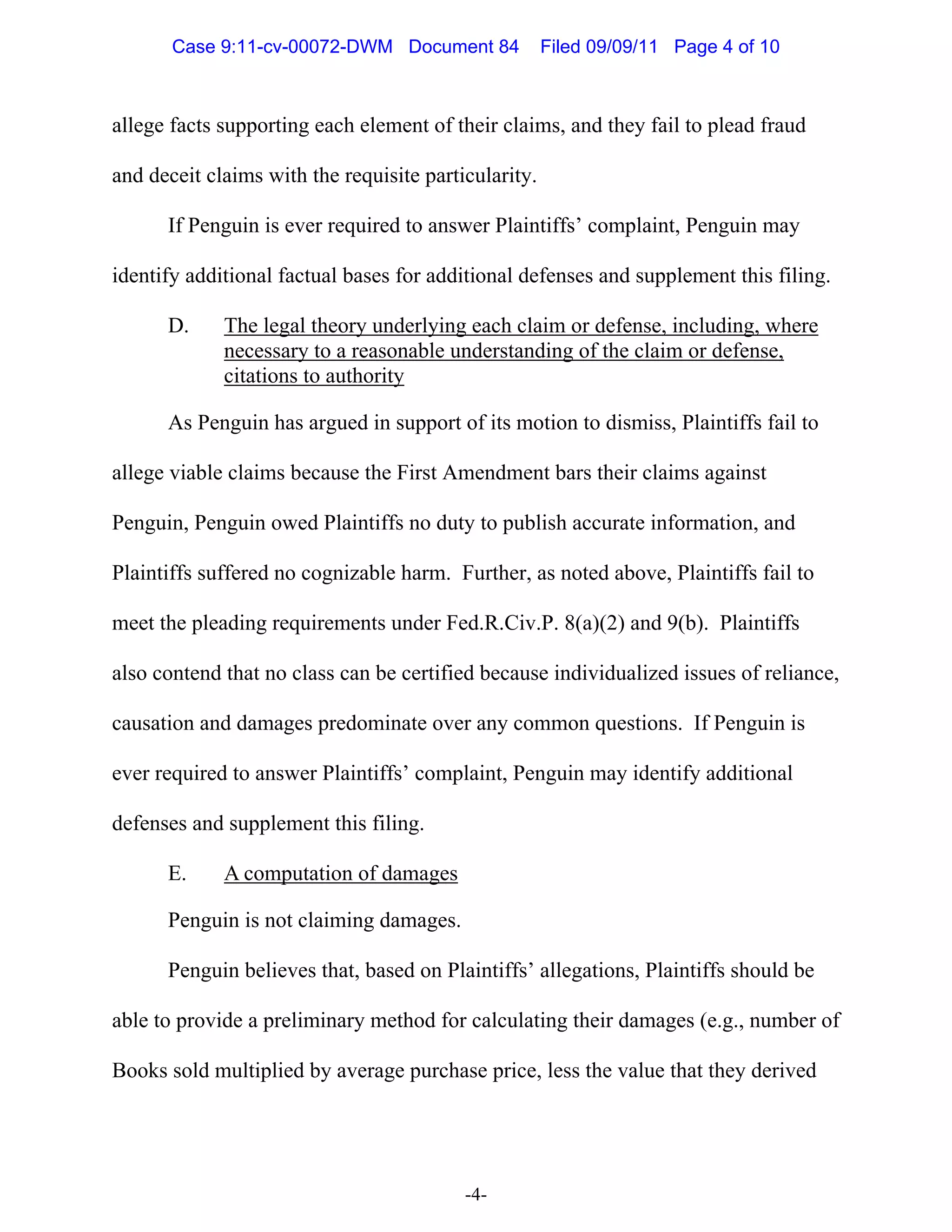 Penguin #39 s preliminary pretrial statement doc 84 PDF