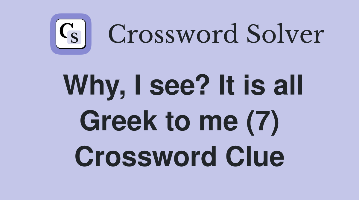 Why I see? It is all Greek to me (7) Crossword Clue Answers