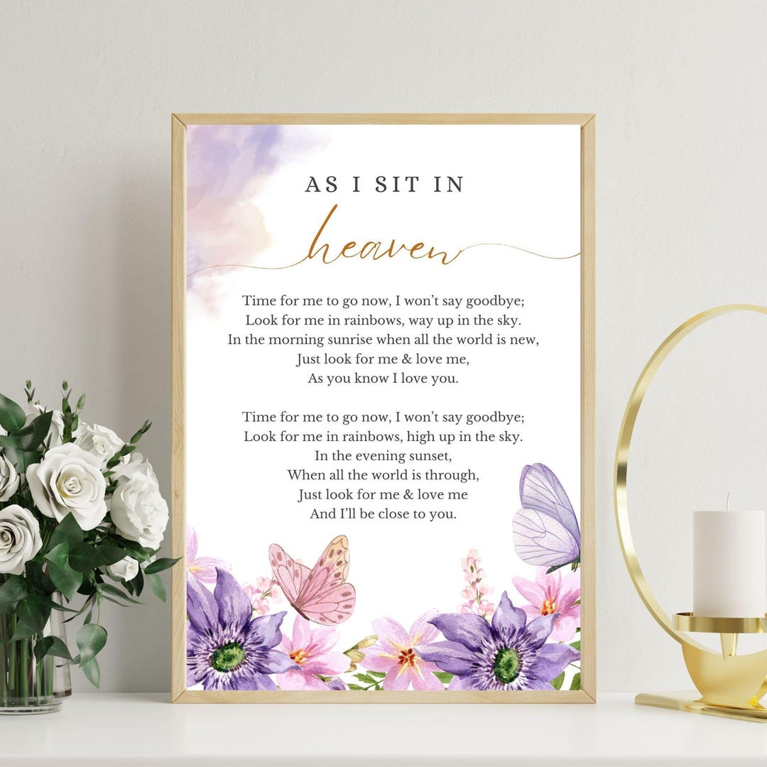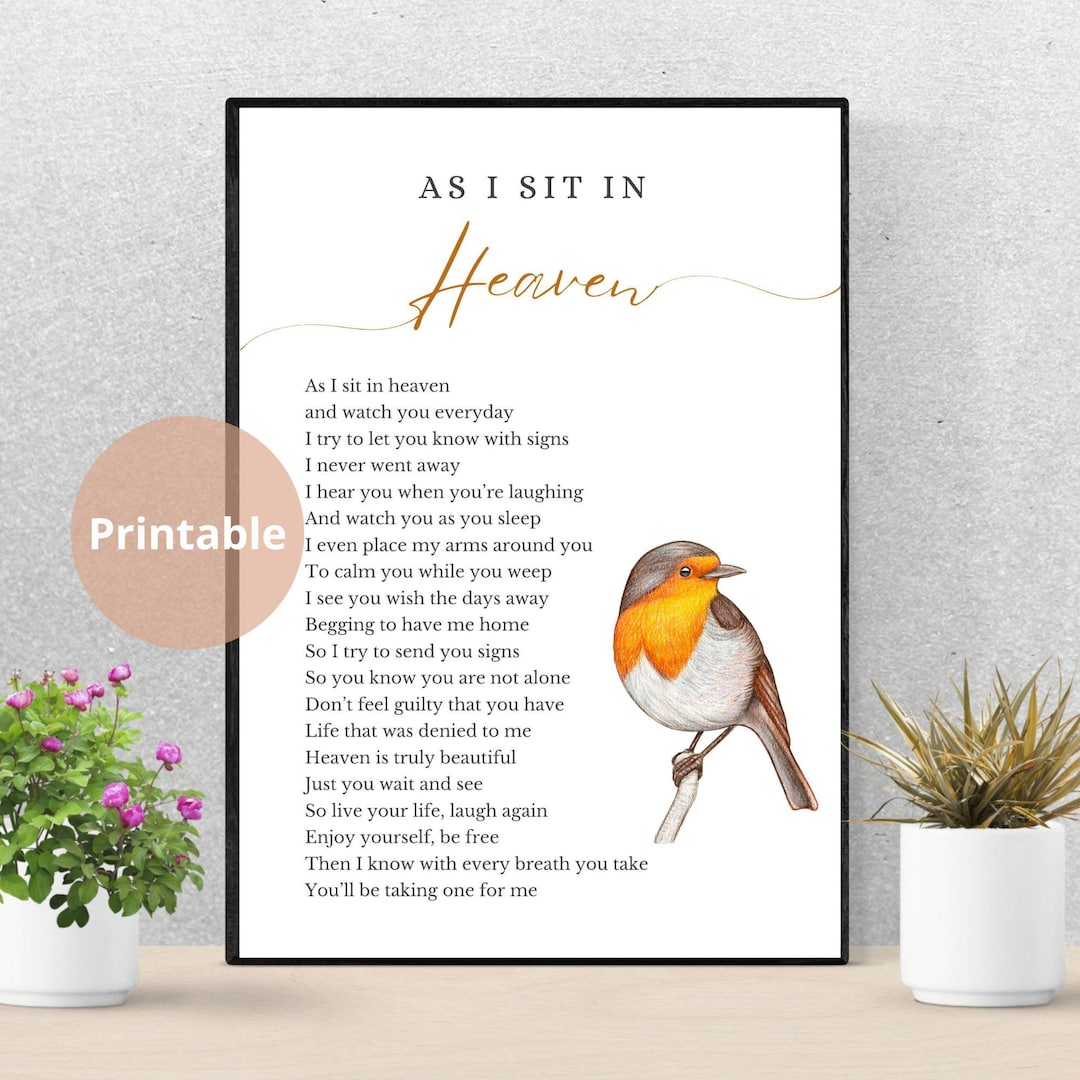 As I Sit in Heaven Printable Poem in Loving Memory Wall Art