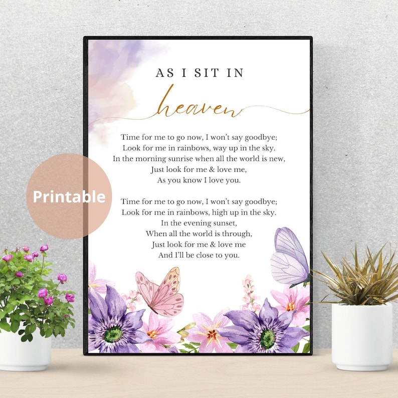 As I Sit in Heaven Printable Poem Digital Download Grief Quote A