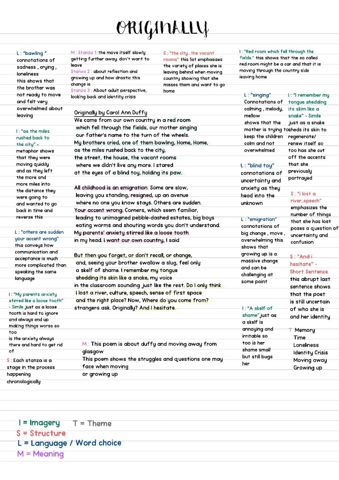 Originally Poem by Carol Ann Duffy Annotated PDF and More (English