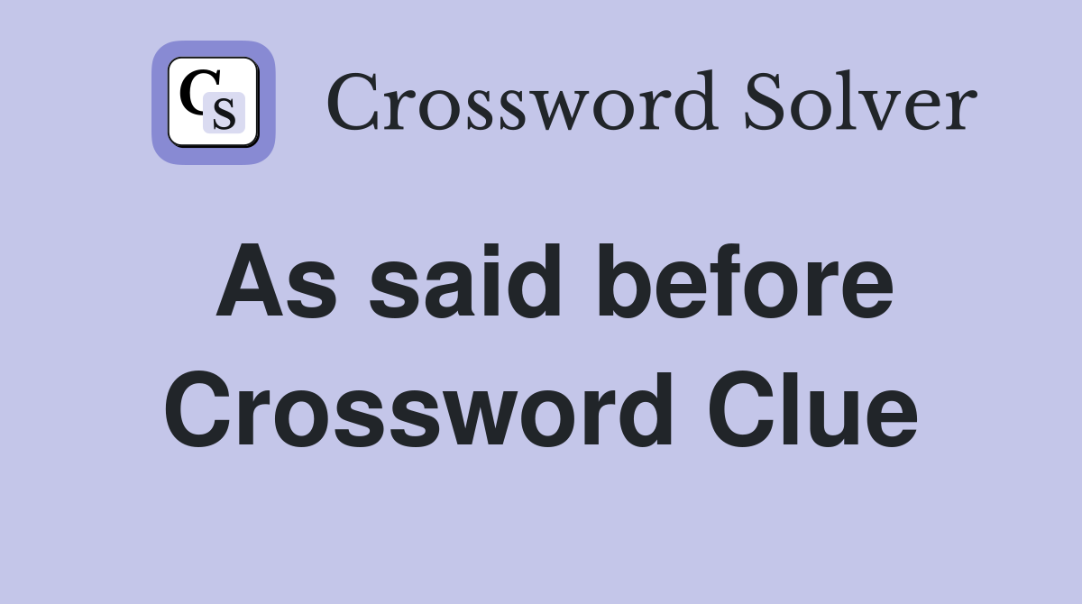 As said before Crossword Clue Answers Crossword Solver
