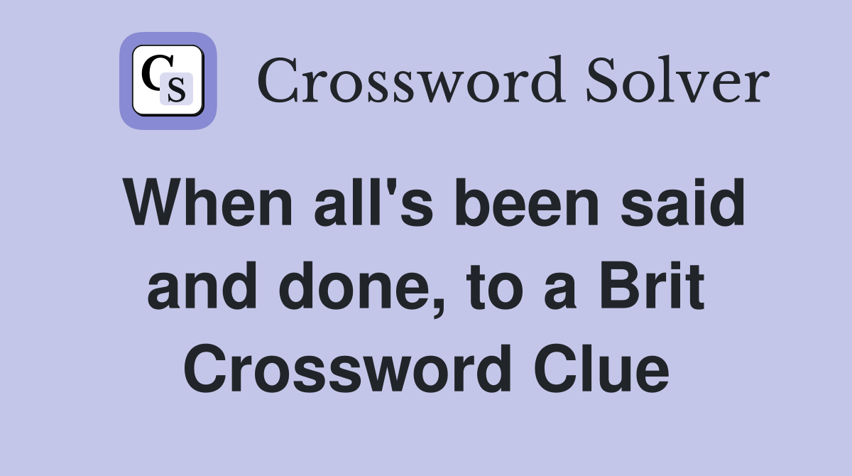 When all s been said and done to a Brit Crossword Clue Answers