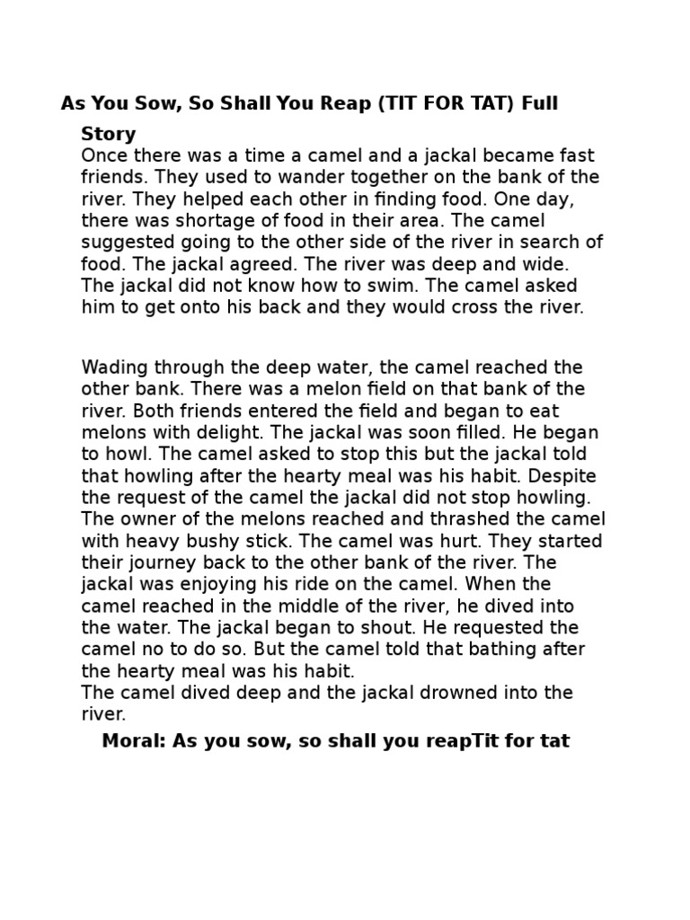 As You Sow So Shall You Reap (TIT FOR TAT) Full Story PDF