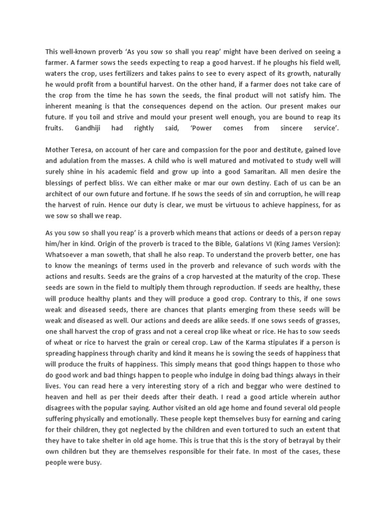 As You Sow so Shall You Reap Free Essay Example
