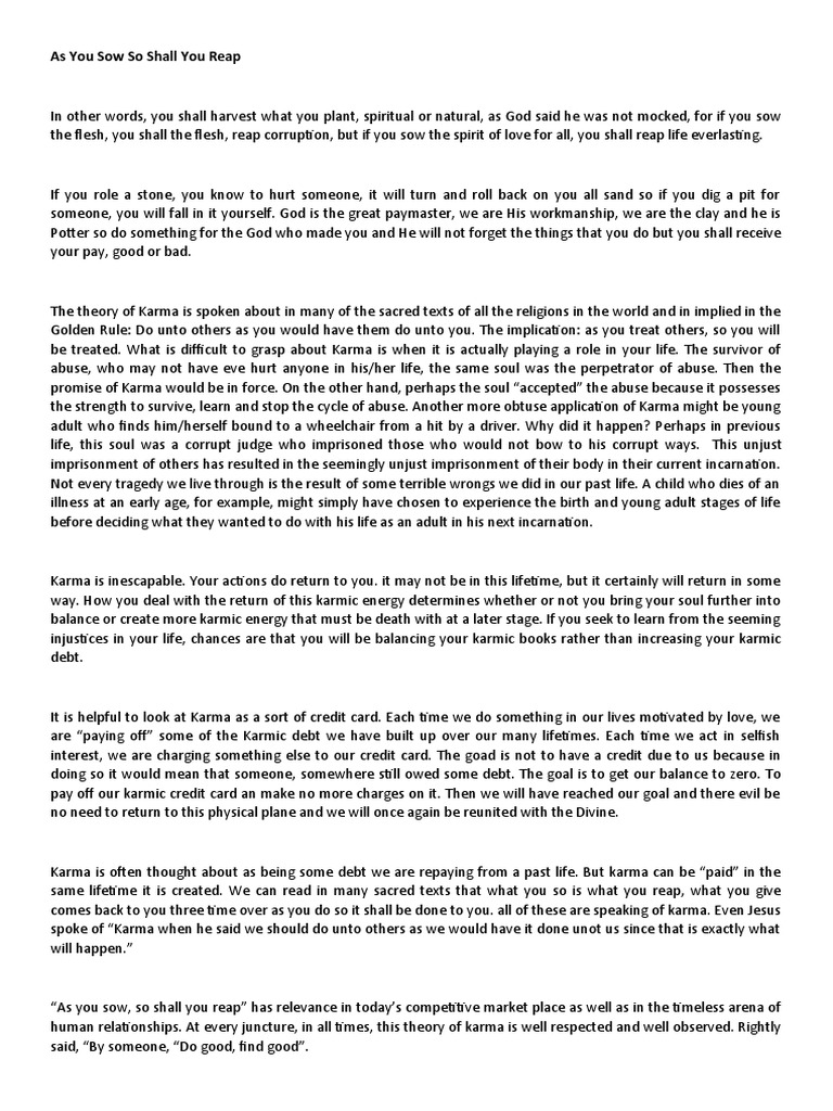 As You Sow So Shall You Reap PDF Karma Debt