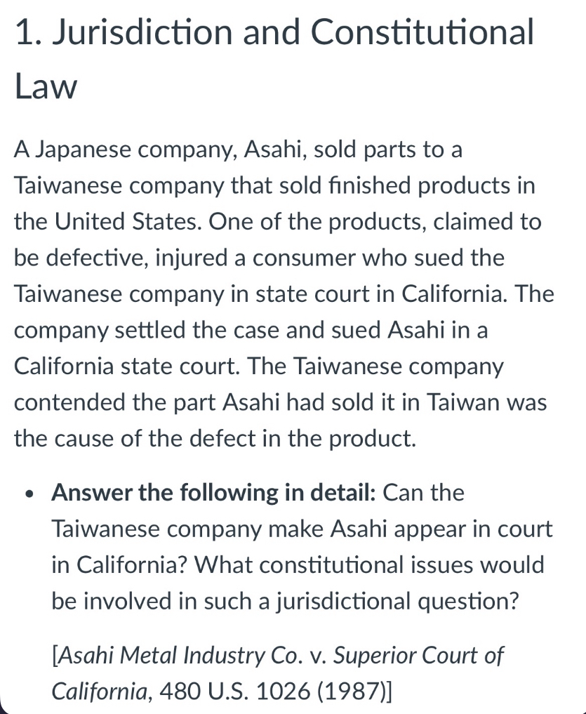 Solved Jurisdiction and ConstitutionalLawA Japanese company Chegg com