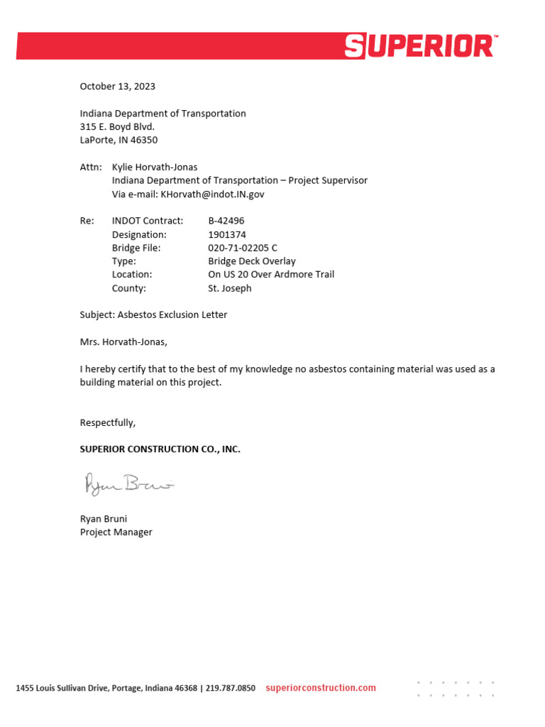 INDOT Asbestos Exclusion Certification PDF Road Infrastructure