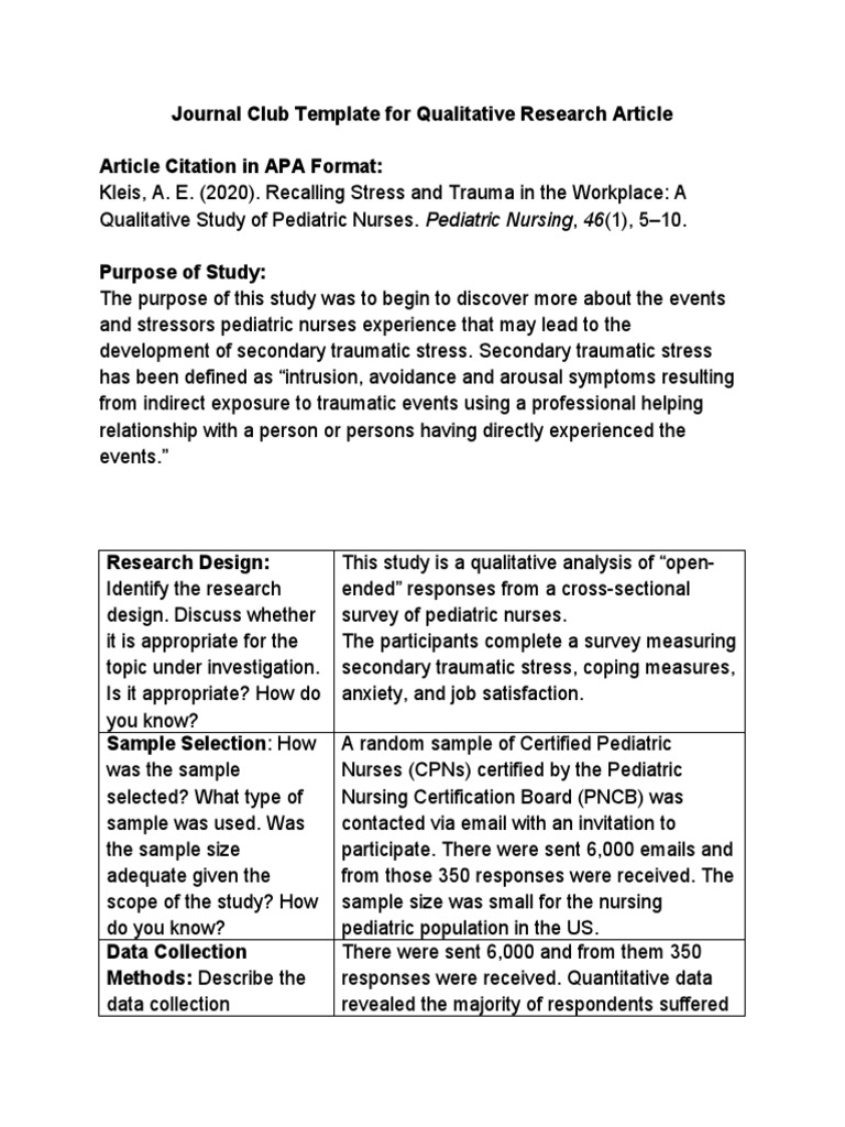 Qualitative Journal Club Template PDF Psychological Trauma