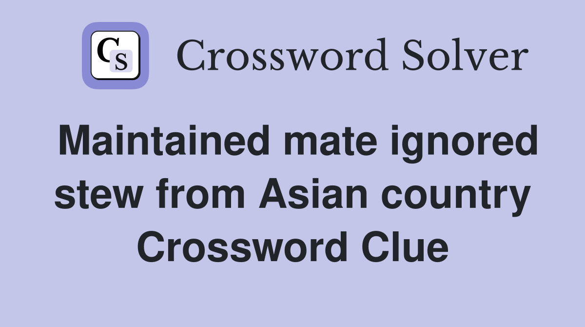 Maintained mate ignored stew from Asian country Crossword Clue