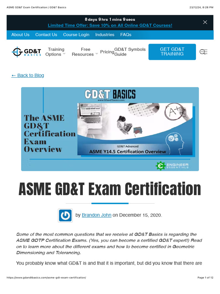 GDTP Certification Y14 5 ASME Certification Exam Preparing for