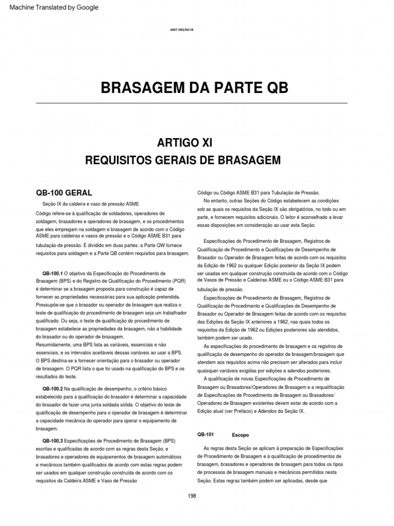 Tradução ASME Section IX Welding and Brazing Qualifications (2007