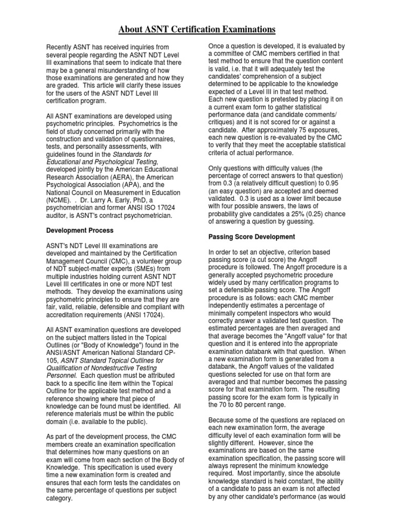 About Asnt Certification Exams PDF Psychometrics Nondestructive