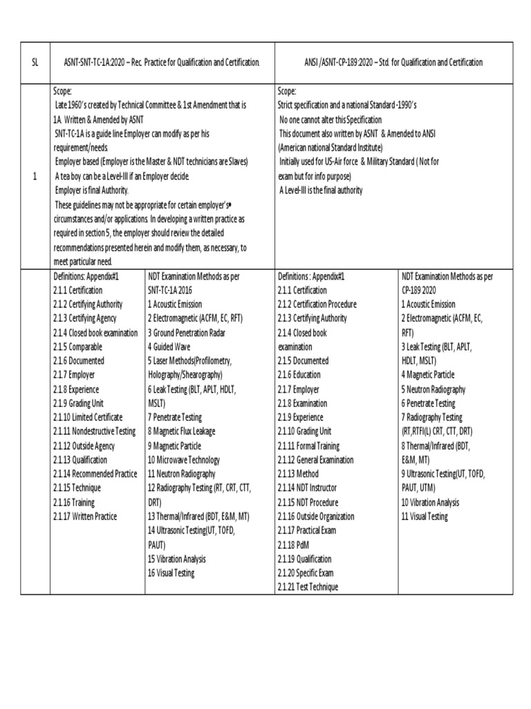 ASNT SNT TC 1A CP 189 2020 Comparisation PDF Nondestructive Testing