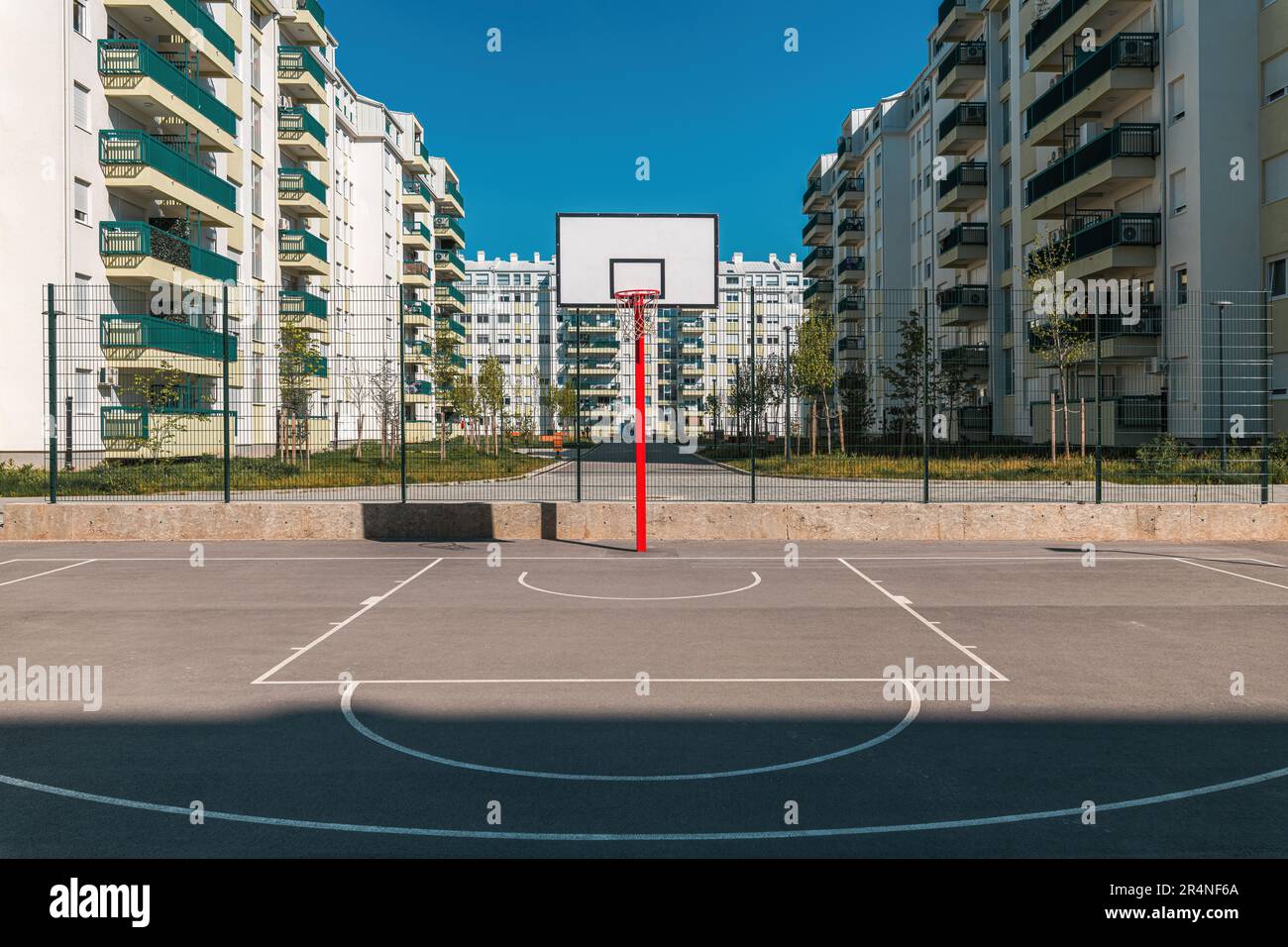 Outdoor basketball court with asphalt surface in residential district
