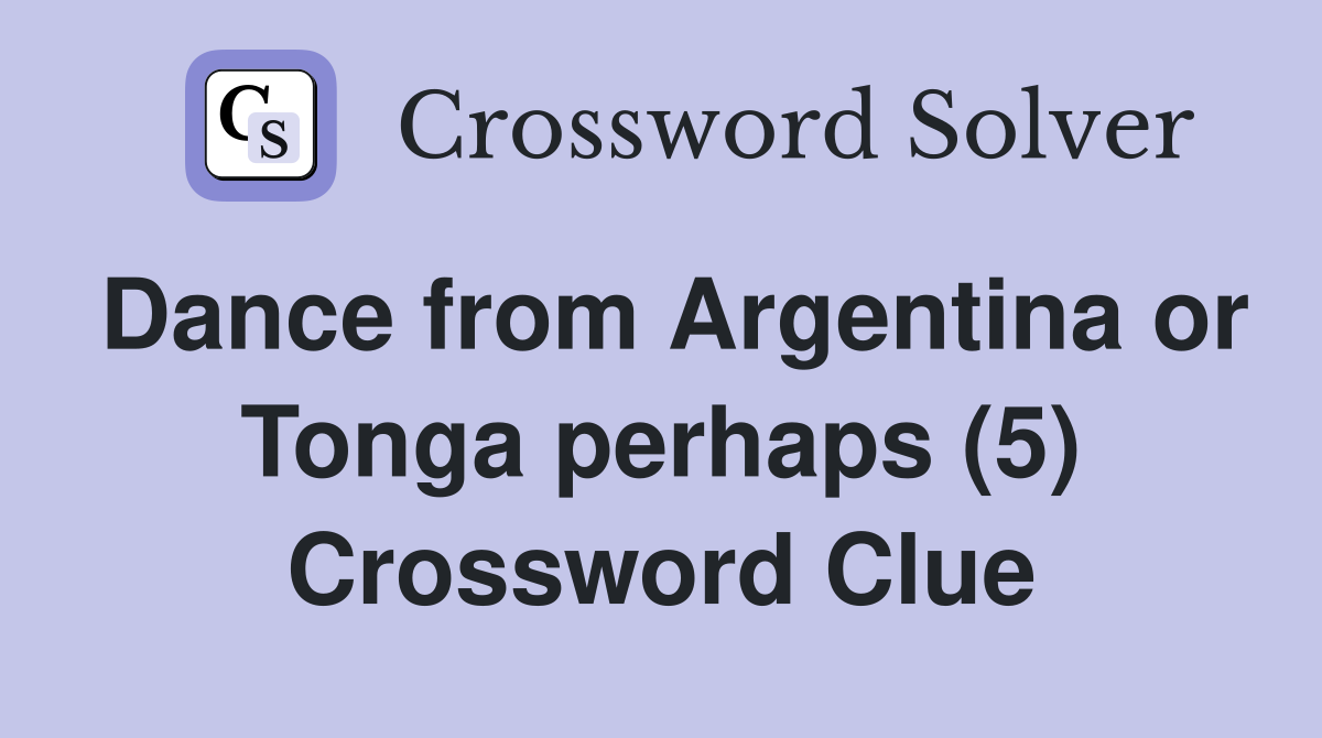 Dance from Argentina or Tonga perhaps (5) Crossword Clue Answers
