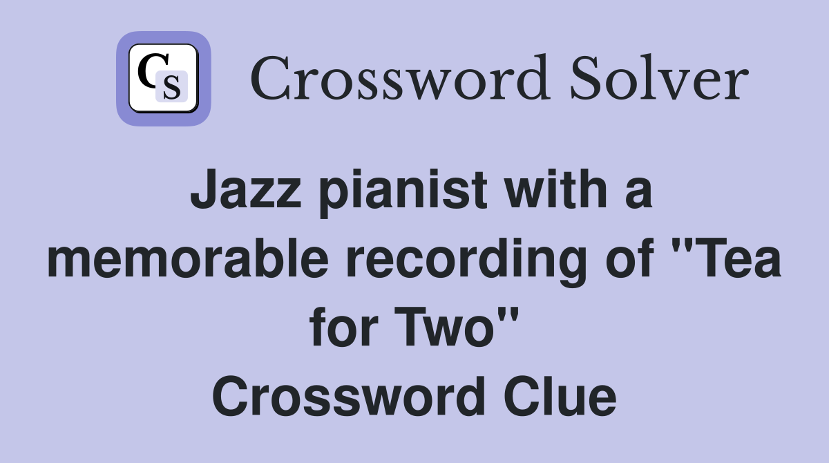 Jazz pianist with a memorable recording of quot Tea for Two quot Crossword