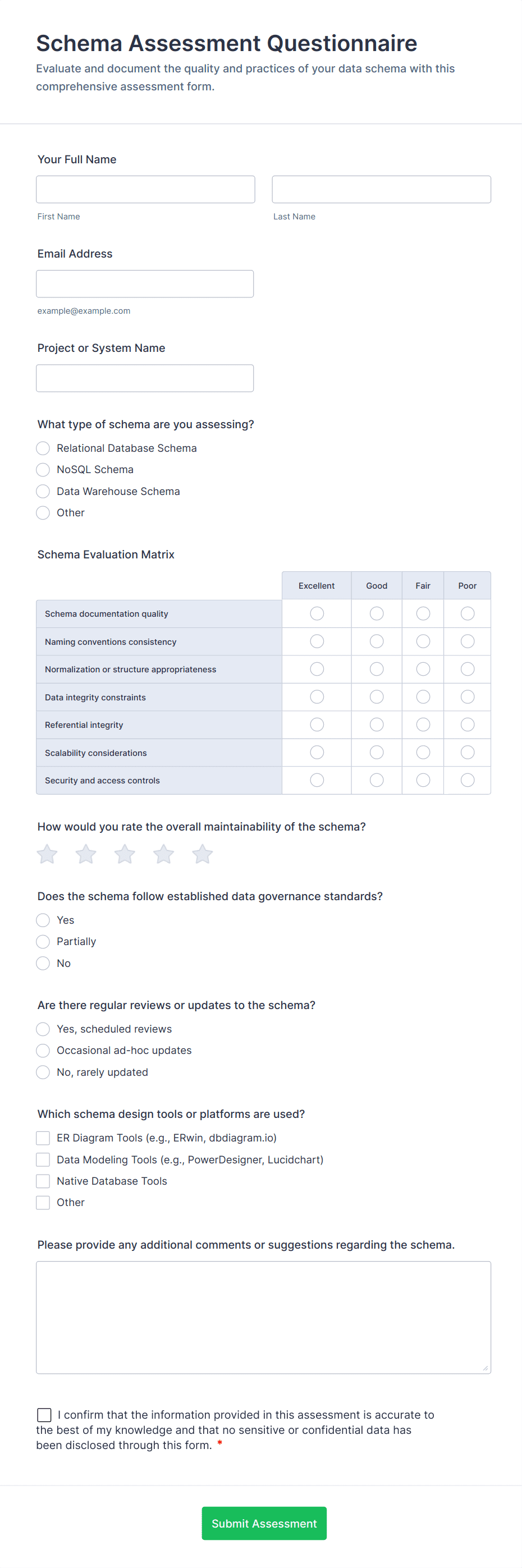 Schema Assessment Questionnaire Form Template Jotform
