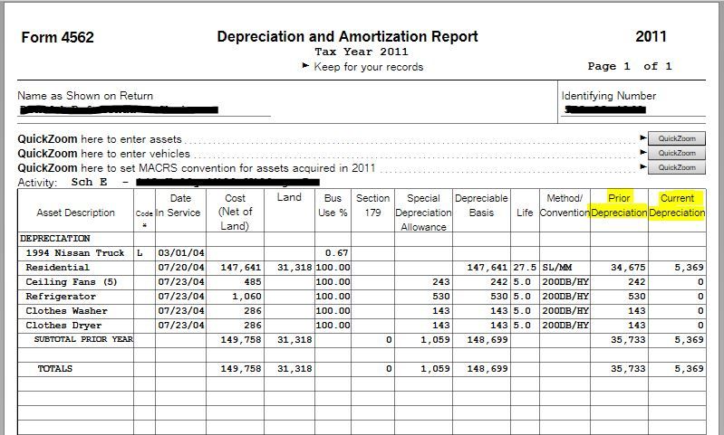 How did TurboTax arrive at DEPRECIATION ALLOWED AMOUNT on SCHEDULE E