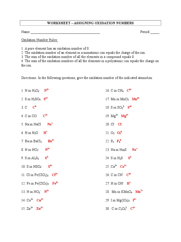 Worksheet Oxidation Numbers Answer Key Printable Calendars AT A GLANCE