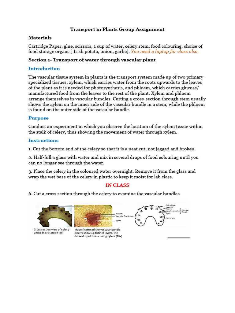 Transport in Plants Group Assignment 1 PDF Plant Stem Tissue