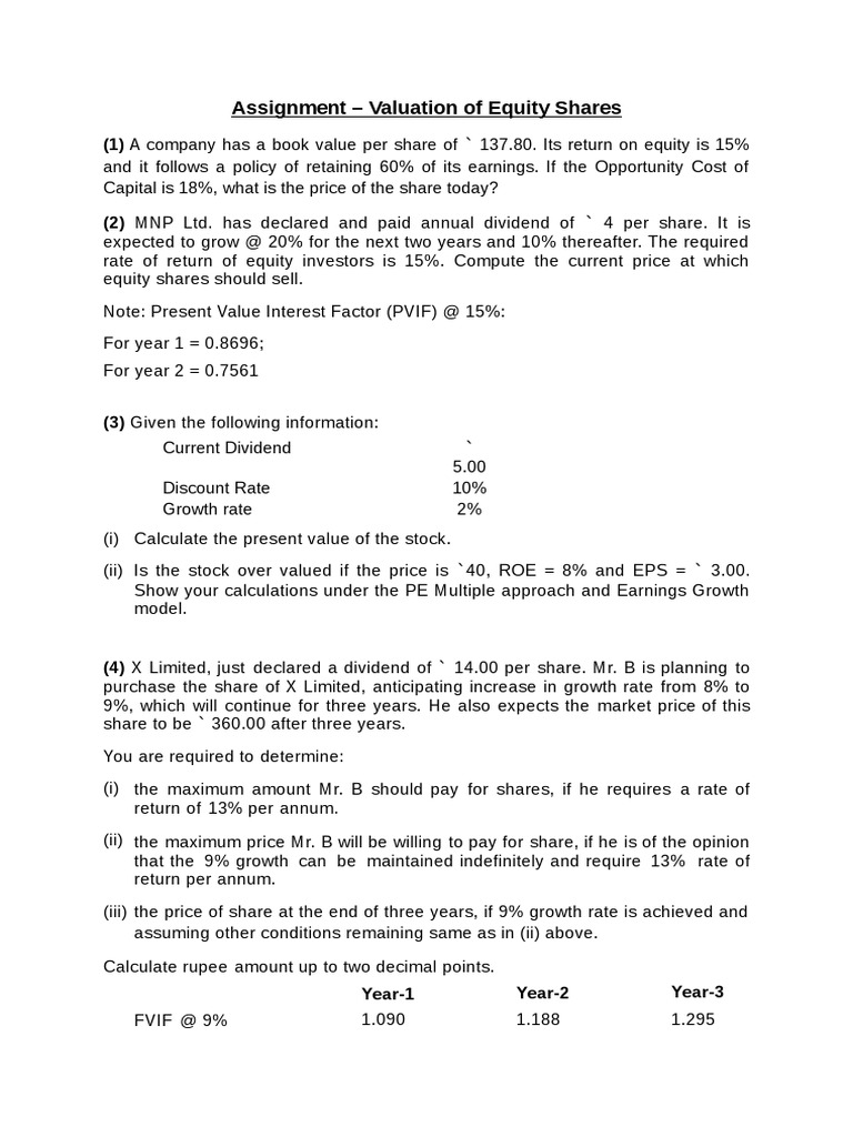 3 Valuation of Equity Shares Assignment (26 04 19) PDF Dividend