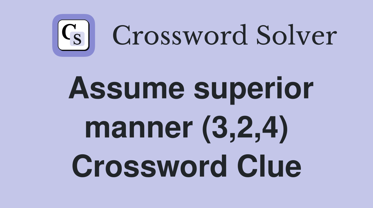 Assume superior manner (3 2 4) Crossword Clue Answers Crossword Solver